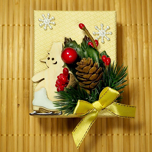 Коробочка картонная прямоугольная бежевая со снеговиком TOV-0062 ручная работа 9х7х3 см