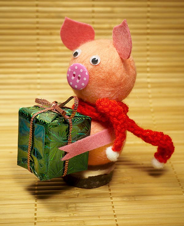 Сувенирная игрушка Поросенок с зеленым подарком TOV-0081 ручная работа 11 см