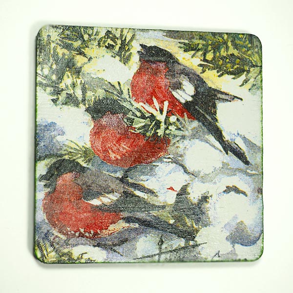 Подставка под горячее квадратная со Снегирями TOV-0100 ручная работа 9.5х9.5 см