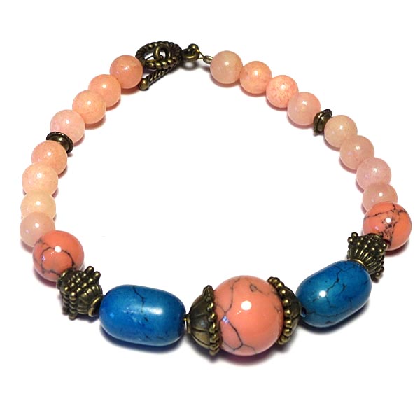 Браслет из натуральных камней (кварц, кахолонг, бирюза) TOV-0130 ручная работа, длина 19.5 см