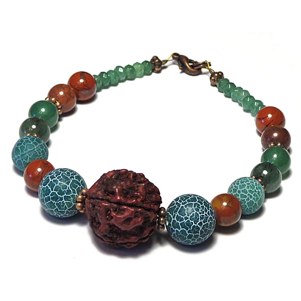 Браслет из натуральных камней (агат, сердолик, амазонит, рудракша) TOV-0135 ручная работа, длина 21 см