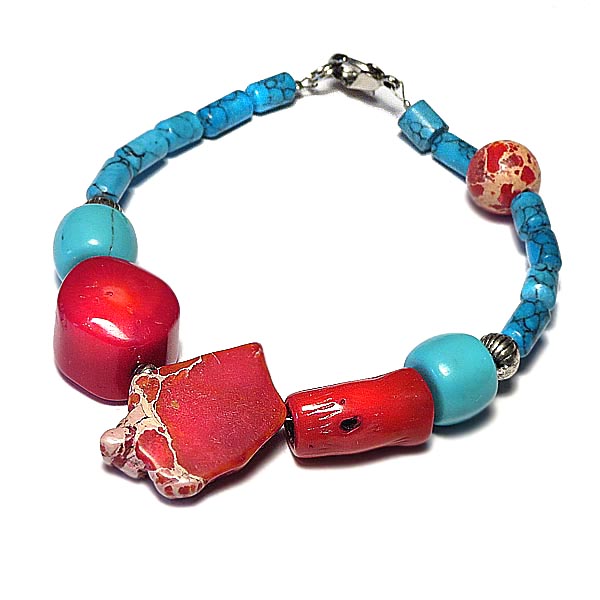 Браслет из натуральных камней (варисцит, коралл, бирюза) TOV-0141 ручная работа, длина 19.5 см