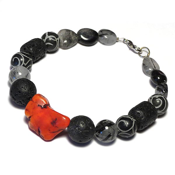 Браслет из натуральных камней (агат, кварц волосатик, бирюза, лава) TOV-0144 ручная работа, длина 20.5 см