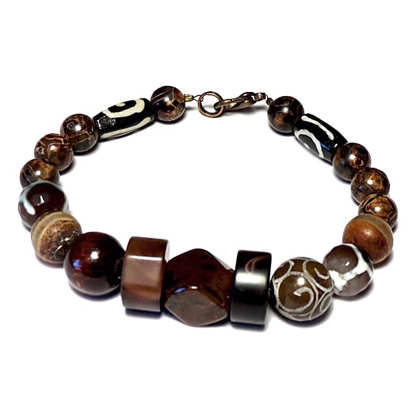 Браслет из натуральных камней (агат, дзи) TOV-0146 ручная работа, длина 20.5 см