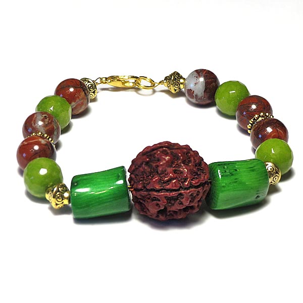 Браслет из натуральных камней (агат, яшма, коралл, рудракша) TOV-0149 ручная работа, длина 20 см