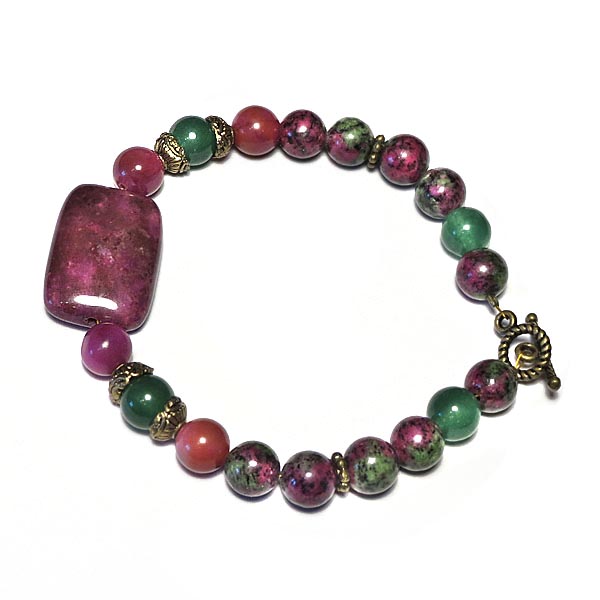 Браслет из натуральных камней (яшма, нефрит, циозит) TOV-0150 ручная работа, длина 20.5 см