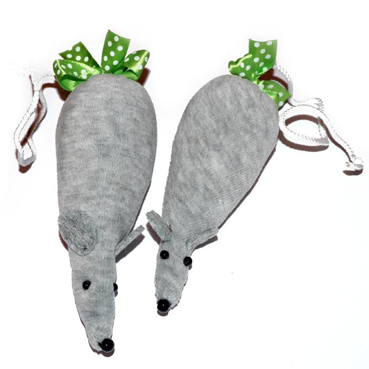 Сувенирная игрушка Мышь с зеленым бантом TOV-0164 ручная работа 14x5 см