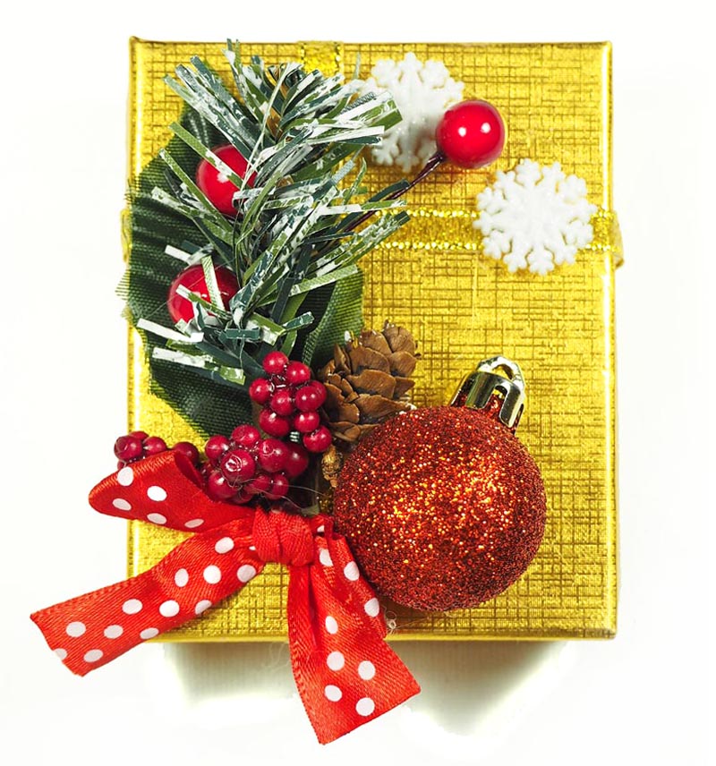 Коробочка картонная прямоугольная золотая с ягодами и игрушкой TOV-0170 ручная работа 9х7х3 см