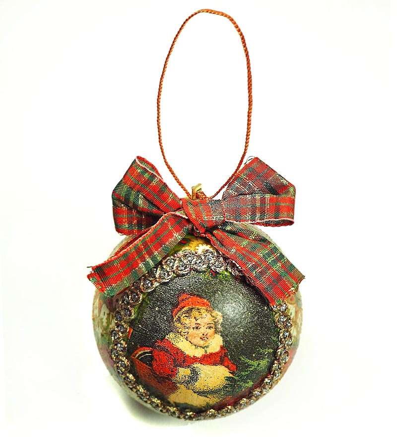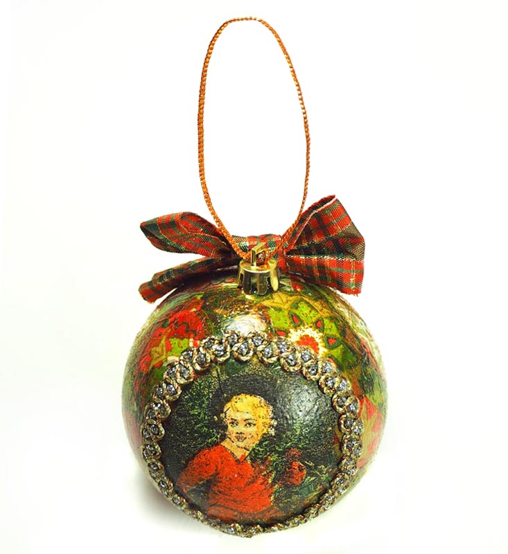 Елочная игрушка шарик Новогодние дети TOV-0180 ручная работа 10 см