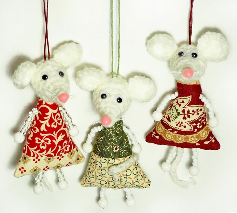 Сувенирная игрушка Мышка Белая вязаная TOV-0183 ручная работа 11x6 см