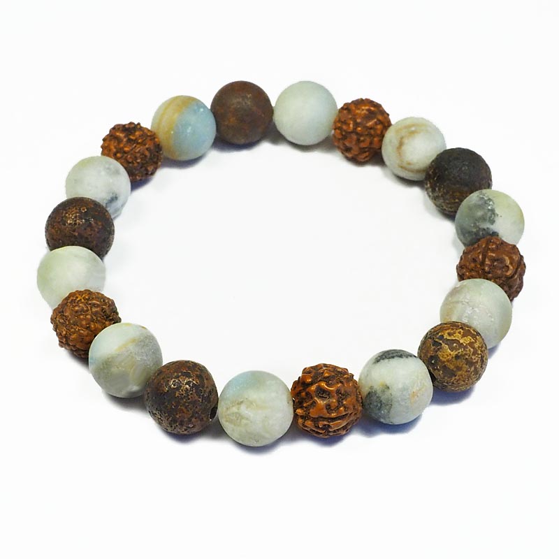 Браслет из натуральных камней (агат, амазонит, рудракша) TOV-0207 ручная работа, диаметр 6 см