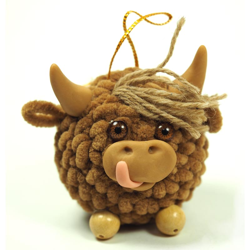 Елочная игрушка шарик Бычок бежевый TOV-0224 ручная работа 7 см