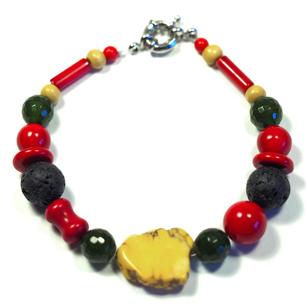 Браслет из натуральных камней (коралл, лава, агат, говлит, дерево) TOV-0234 ручная работа, длина 22 см
