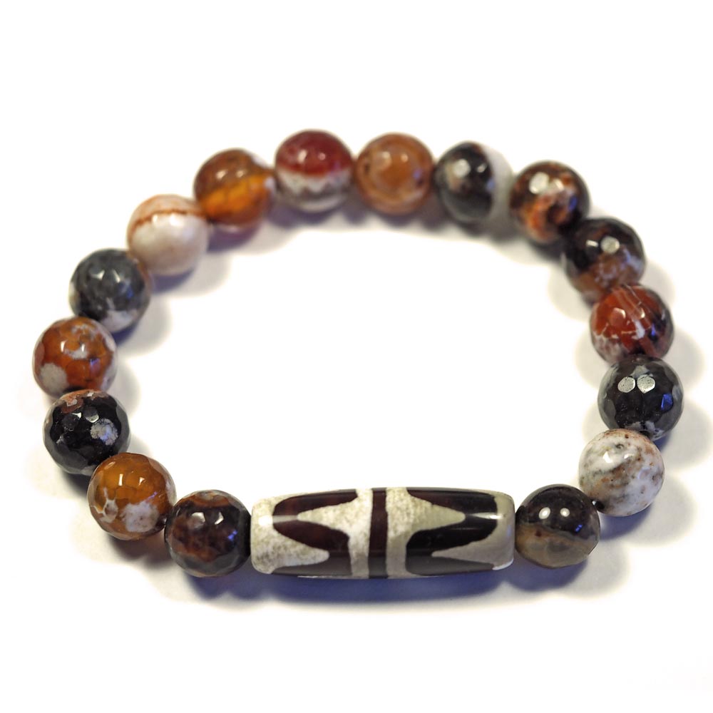 Браслет из натуральных камней (агат, дзи зуб тигра) TOV-0236 ручная работа, диаметр 6 см