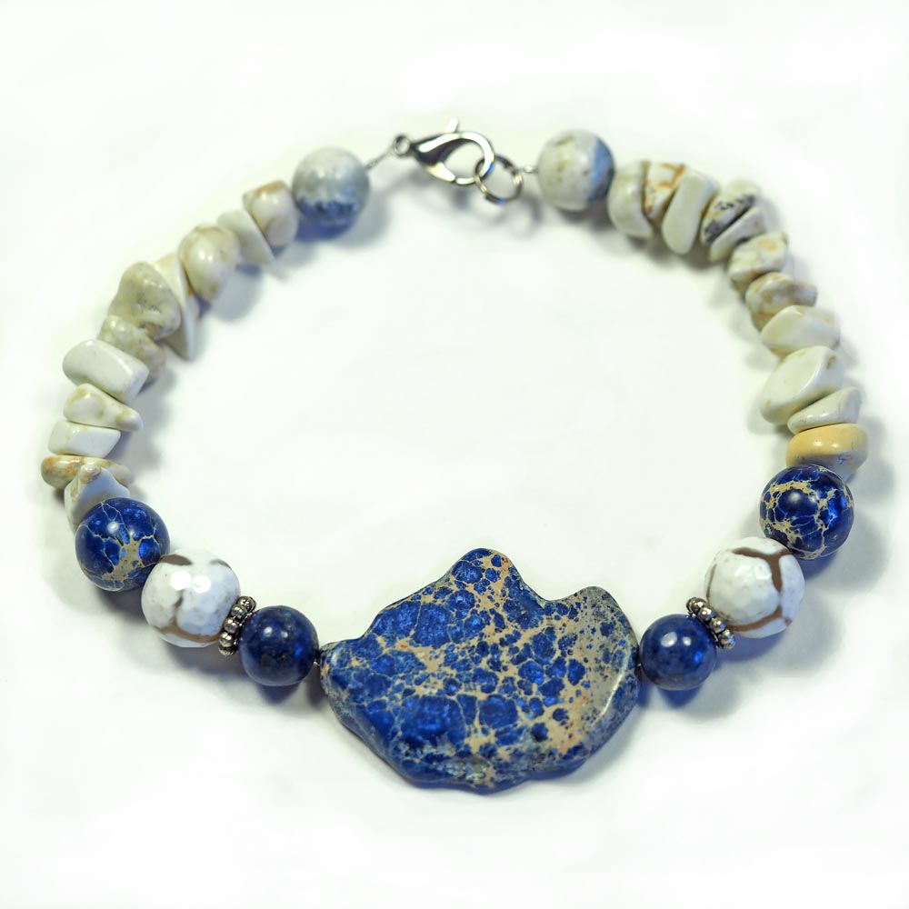 Браслет из натуральных камней (агат, лазурит, варисцит) TOV-0241 ручная работа, длина 21.5 см