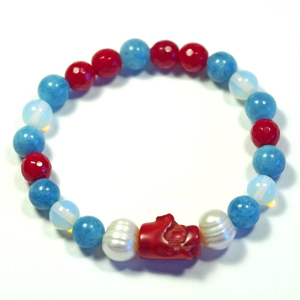 Браслет из натуральных камней (коралл, агат, кварц) TOV-0243 ручная работа, диаметр 6 см
