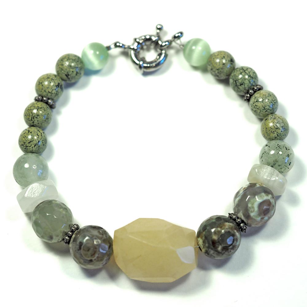 Браслет из натуральных камней (кварц, кахолонг, бирюза) TOV-0130 ручная работа, длина 19.5 см