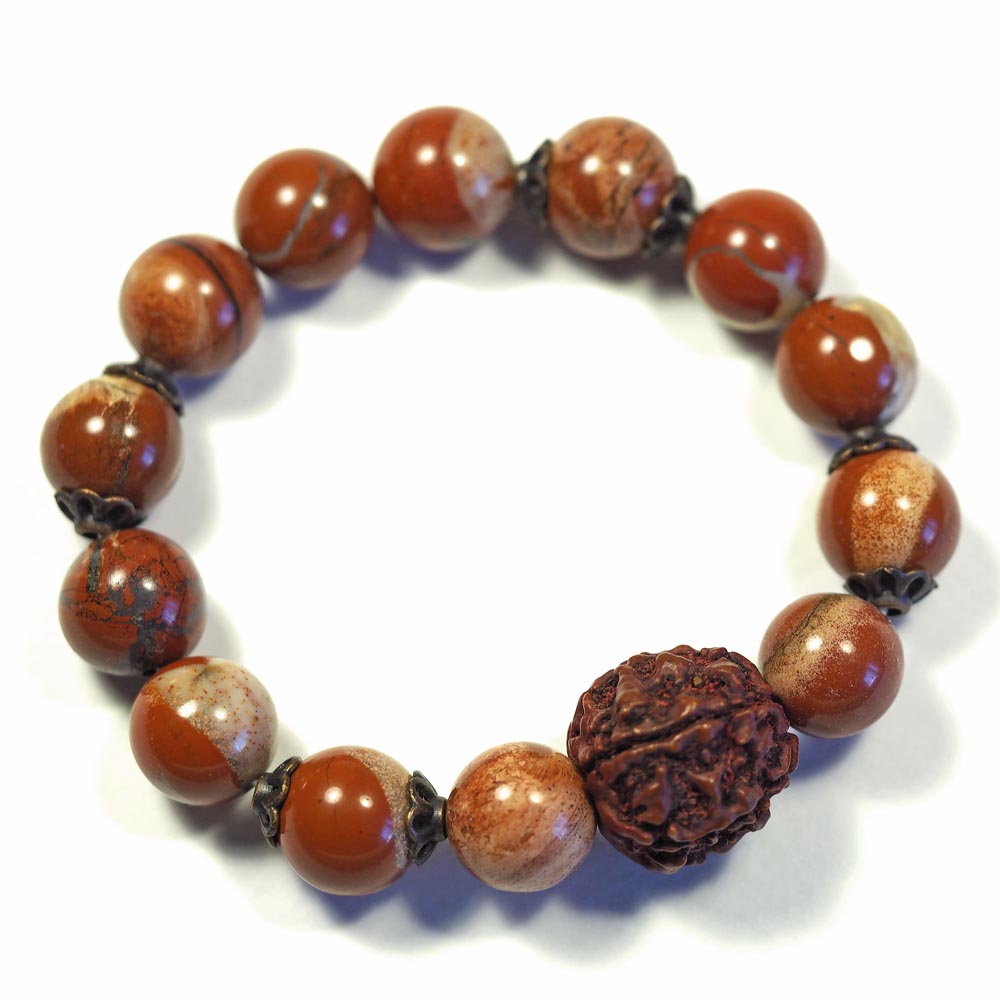 Браслет из натуральных камней (яшма, рудракша) TOV-0260 ручная работа, диаметр 6 см
