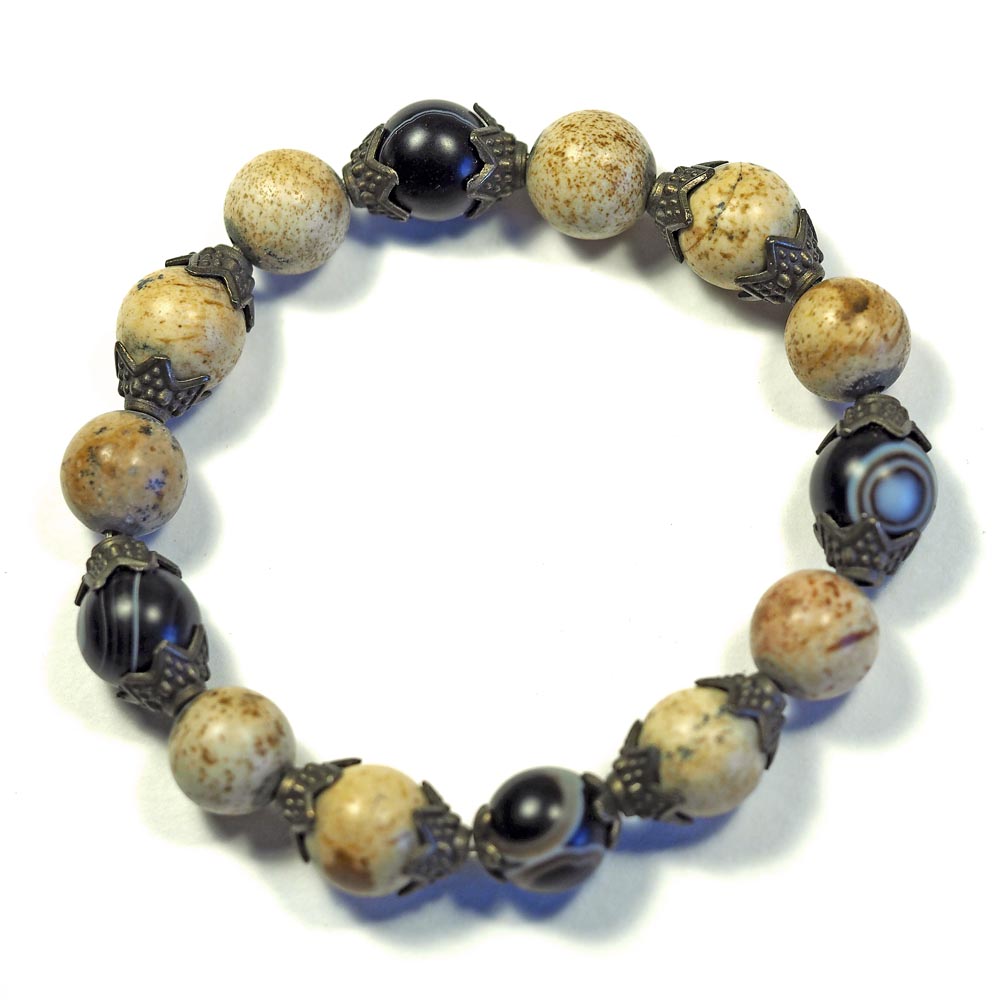 Браслет из натуральных камней (агат, яшма) TOV-0263 ручная работа, диаметр 6 см