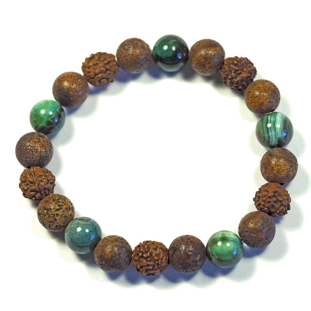 Браслет из натуральных камней (агат, рудракша) TOV-0266 ручная работа, диаметр 6 см