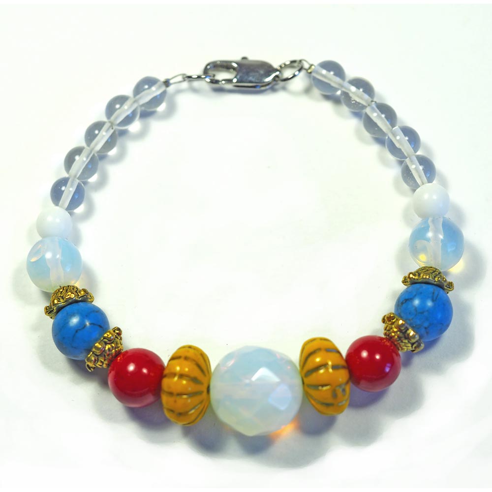 Браслет из натуральных камней (кварц, кахолонг, бирюза) TOV-0130 ручная работа, длина 19.5 см