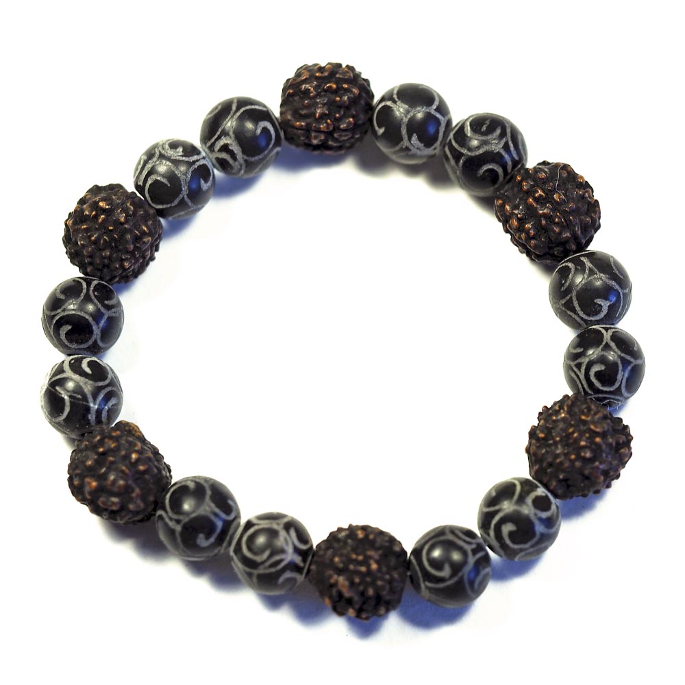 Браслет из натуральных камней (агат, рудракша) TOV-0280 ручная работа, диаметр 6 см