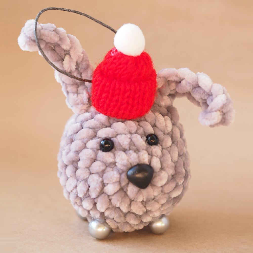 Елочная игрушка шарик Кролик серый TOV-0309 ручная работа 10х7 см