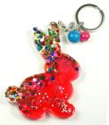 Брелок Заяц из эпоксидной смолы TOV-0317 малиновый цвет с разноцветным конфетти 80х65х6 мм
