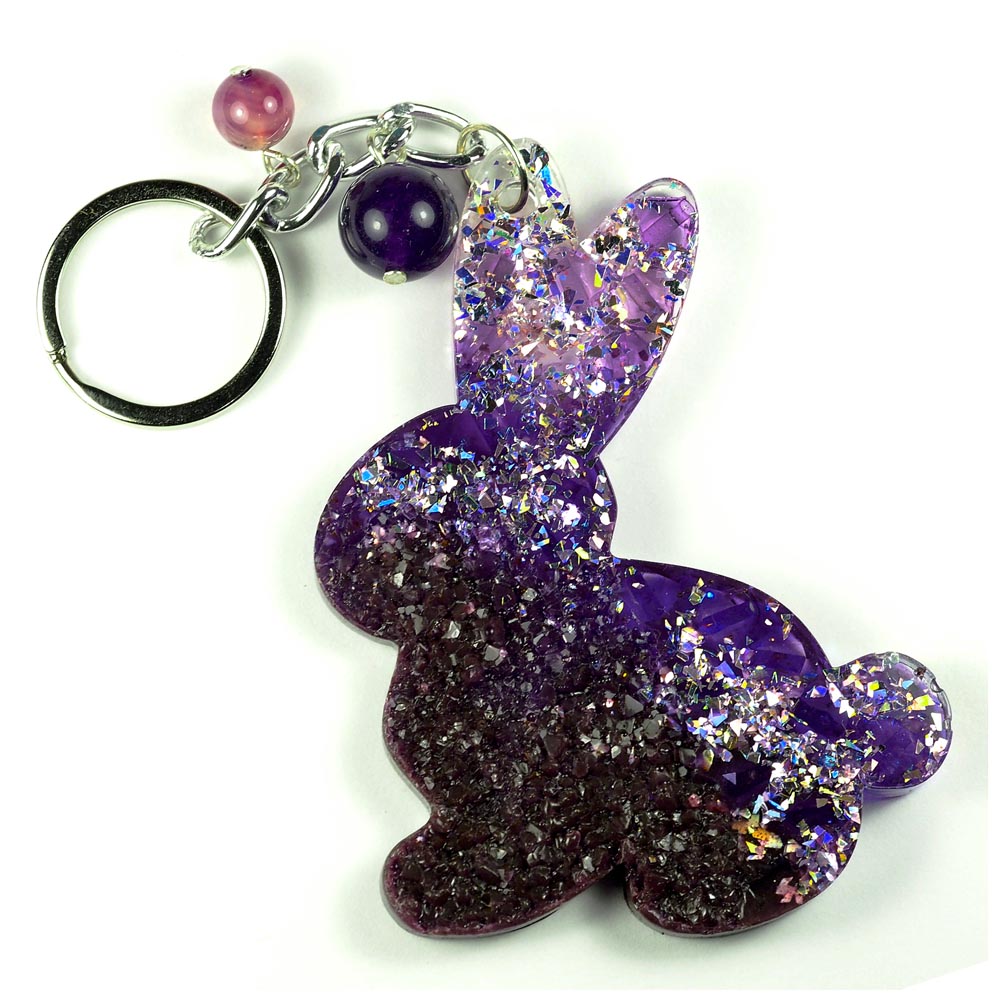Брелок Заяц из эпоксидной смолы TOV-0319 фиолетовый цвет с серебряными блестками 80х65х6 мм