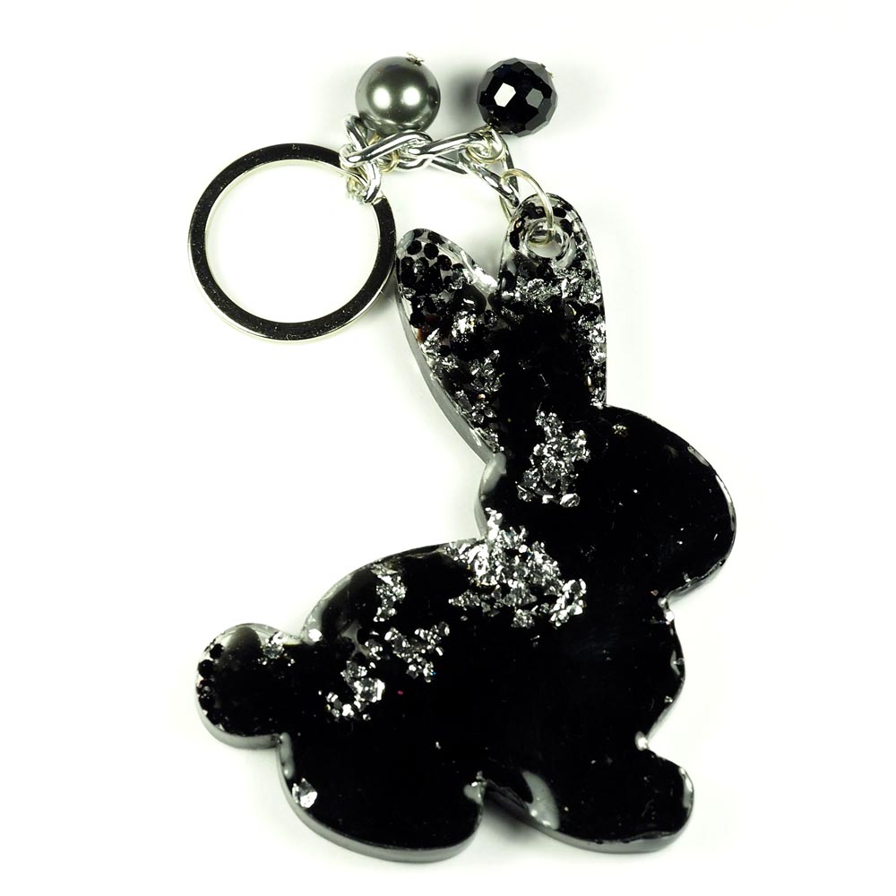 Брелок Заяц из эпоксидной смолы TOV-0320 черный цвет с серебряными блестками 80х65х6 мм