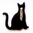 Брошь Кошка Сидящая из эпоксидной смолы TOV-0324 черный цвет с натуральными сухоцветами 80х65х4 мм