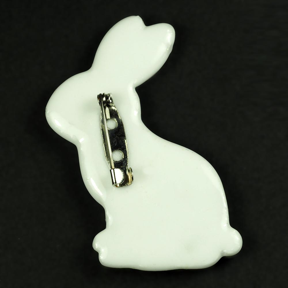 Брошь Зайчик из эпоксидной смолы TOV-0334 белый цвет с оранжевыми морковками 54х40х6 мм