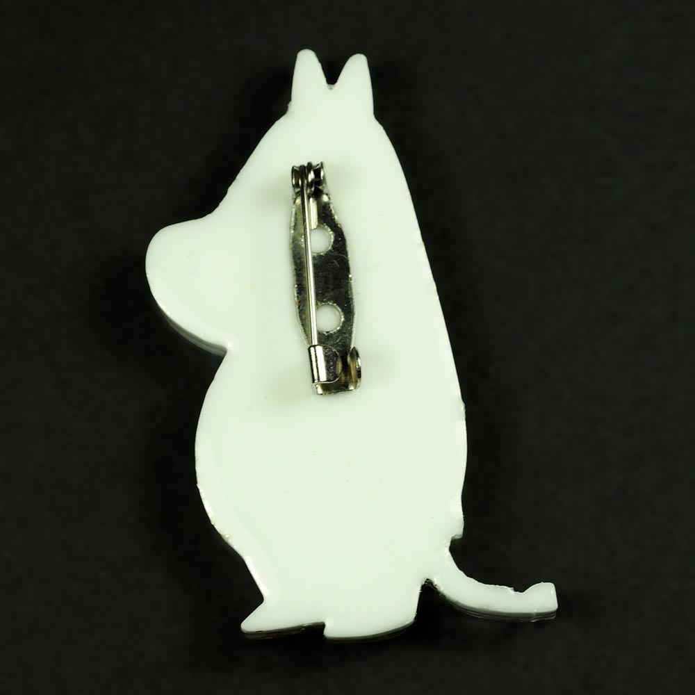 Брошь Муми-тролль из эпоксидной смолы TOV-0342 белый цвет с натуральными сухоцветами Папоротник 50х34х6 мм