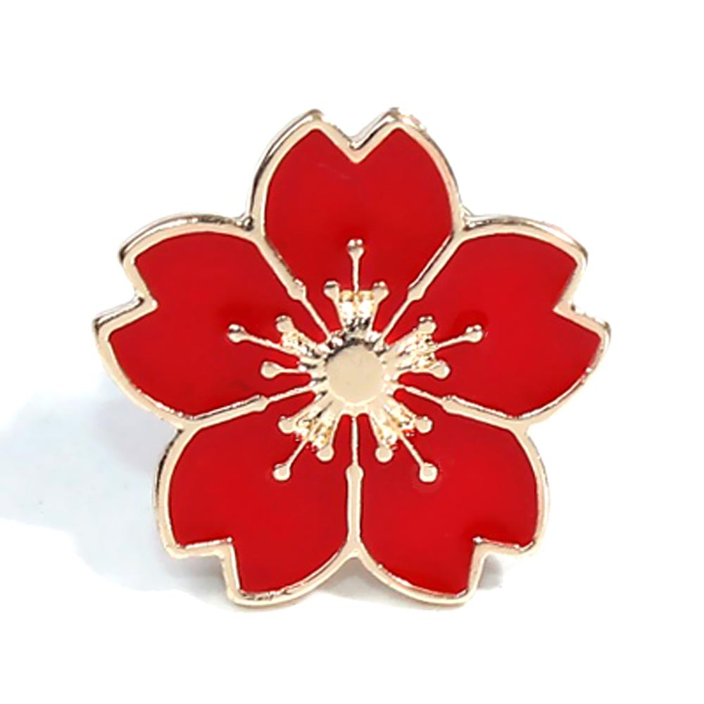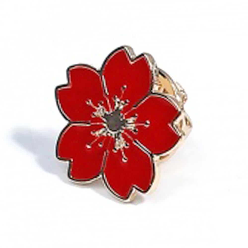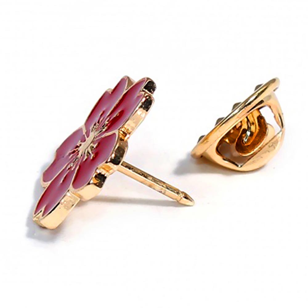Брошь-значок металлическая Цветок Мак красная эмаль TOV-0364 основа золотого цвета с клипсой 18х17 мм