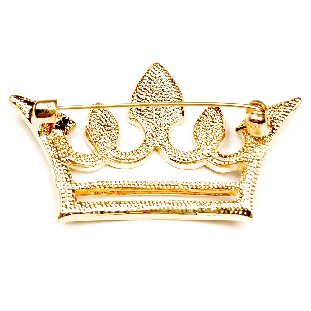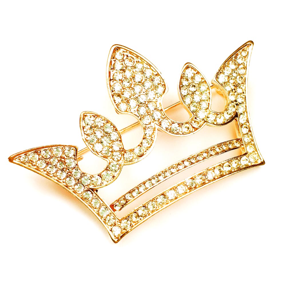 Брошь Корона с прозрачными стразами TOV-0372 основа золотого цвета 55х32х7 мм