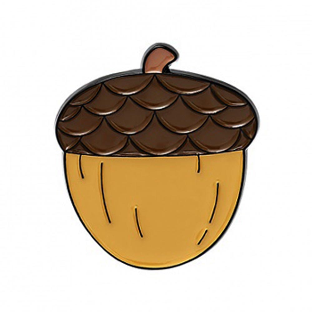 Брошь-значок металлическая Желудь коричневая эмаль TOV-0373 основа черного цвета с клипсой 31х25 мм