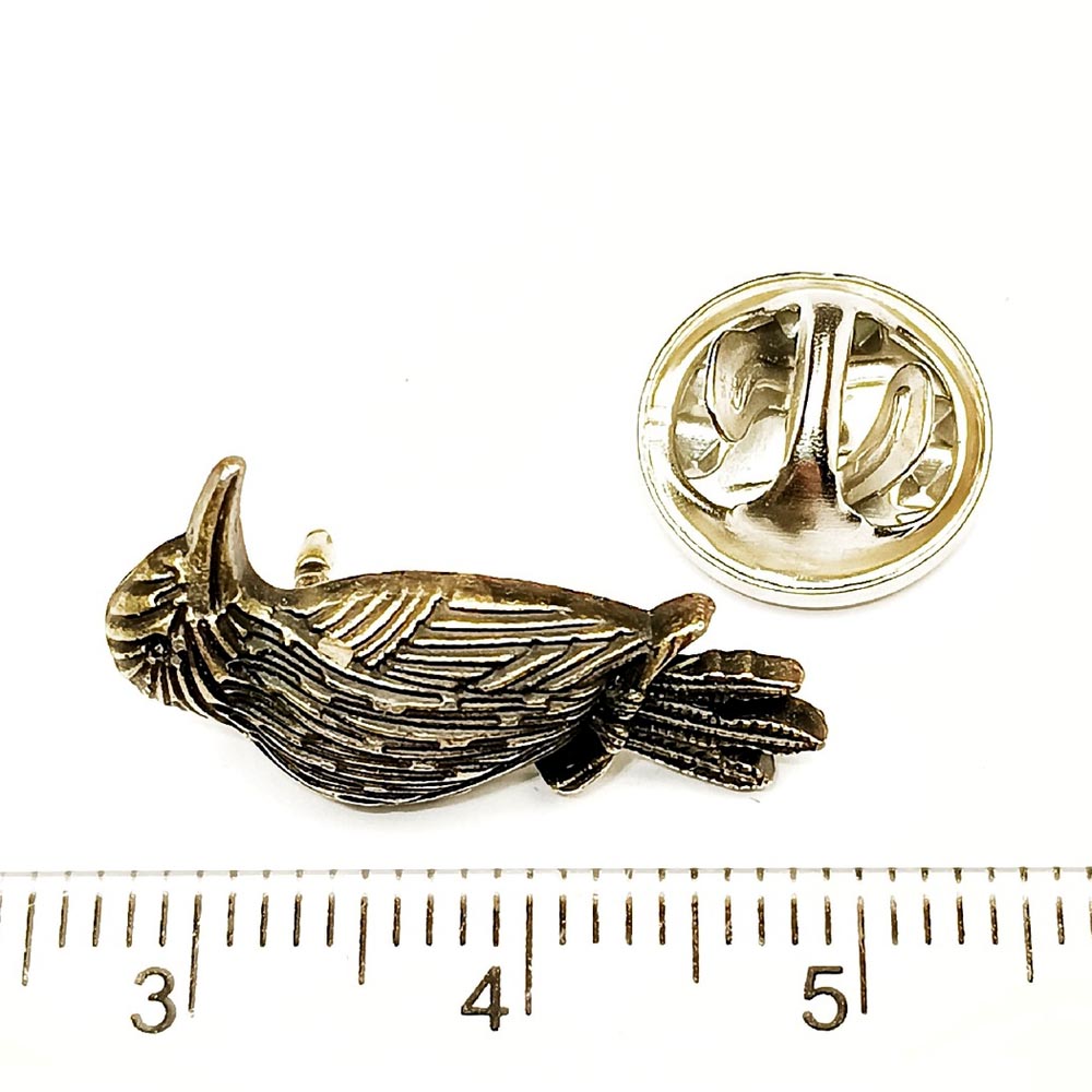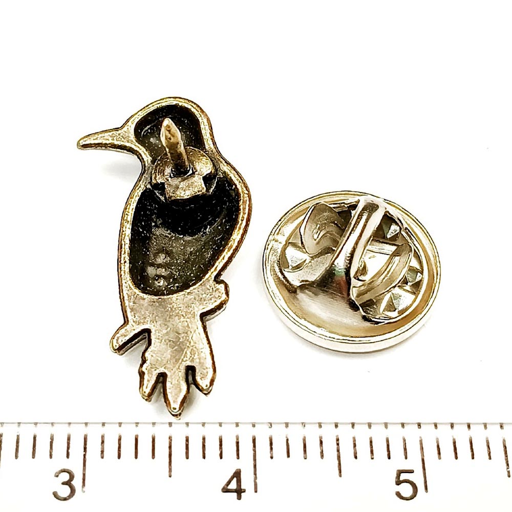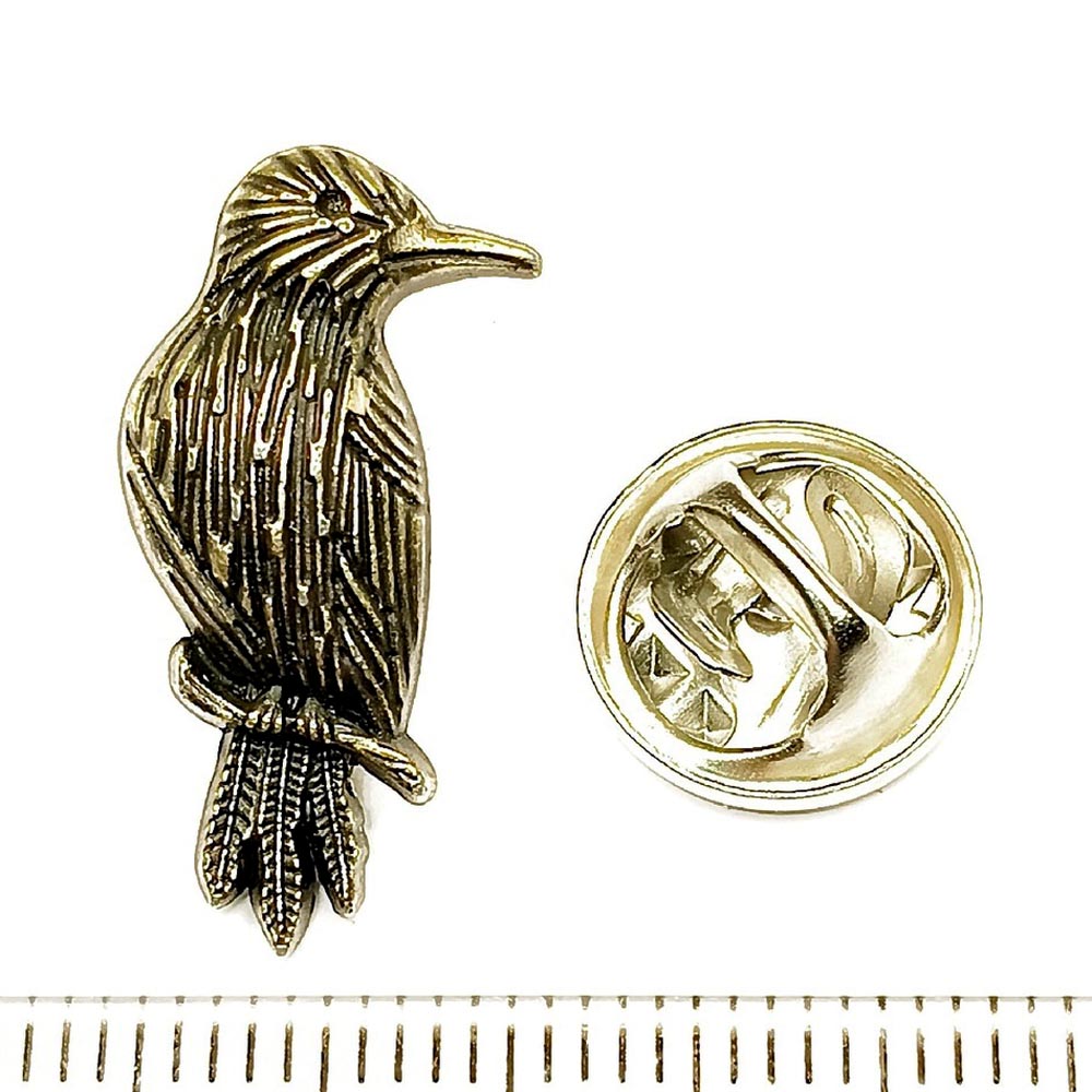 Брошь-значок металлическая Птица Скворец TOV-0379 бронзовый цвет с клипсой 22х11 мм
