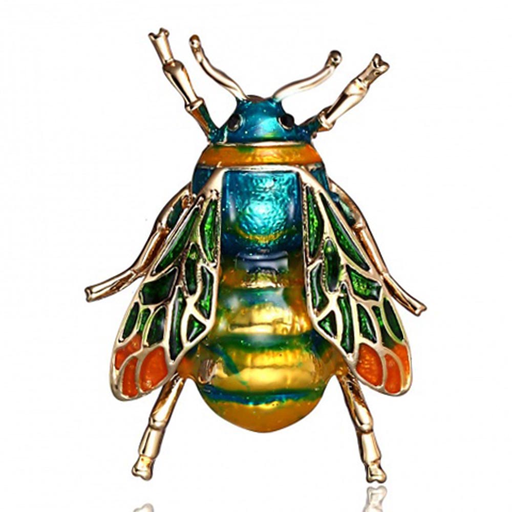 Брошь металлическая Оса с желто-зеленой эмалью TOV-0383 основа золотого цвета 35х26х13 мм