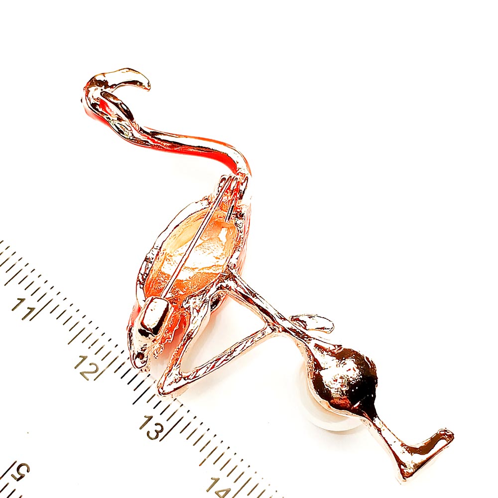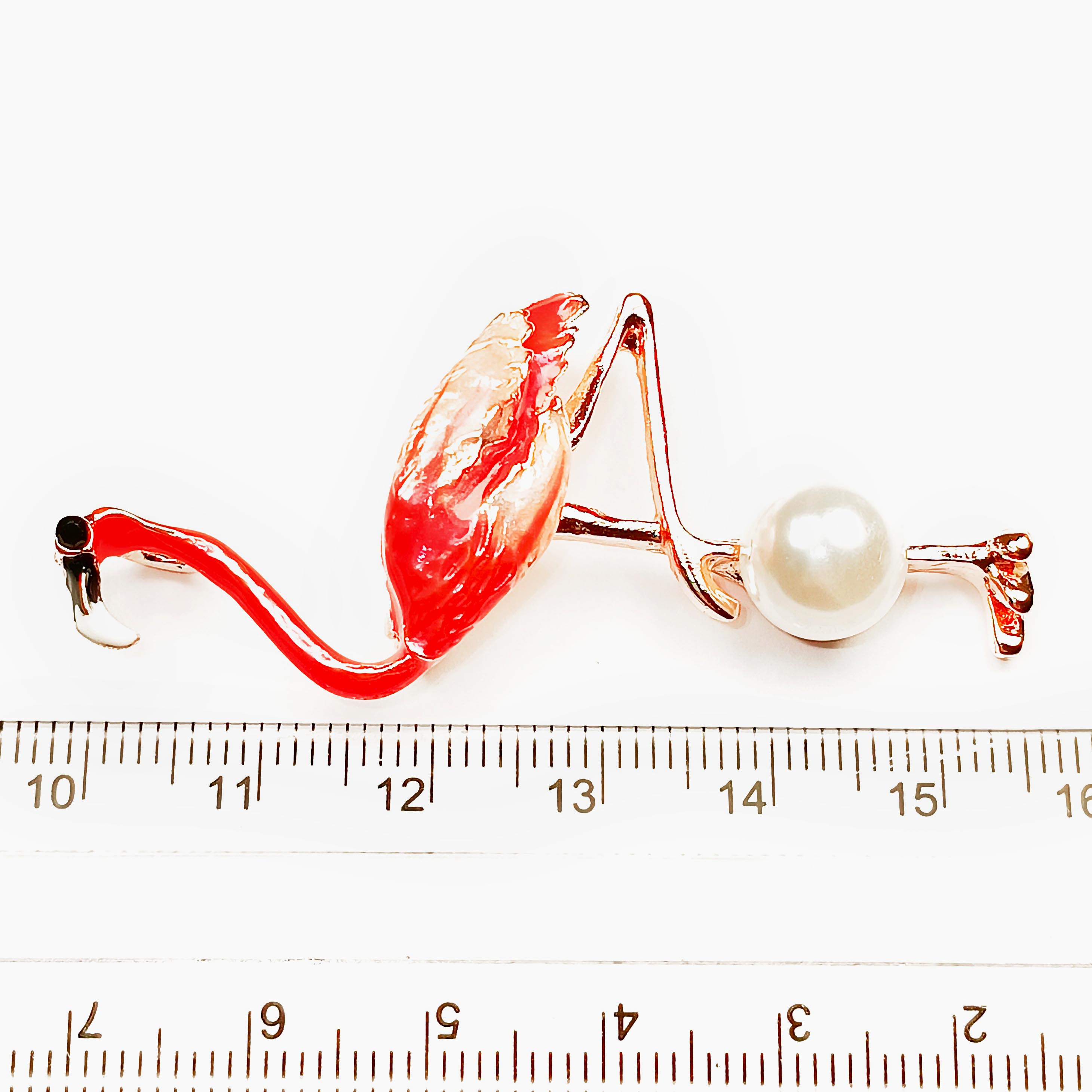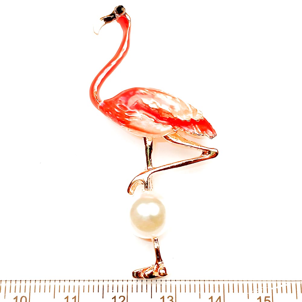 Брошь металлическая Розовый фламинго с бусиной под жемчуг TOV-0396 основа золотого цвета 55х30х7 мм