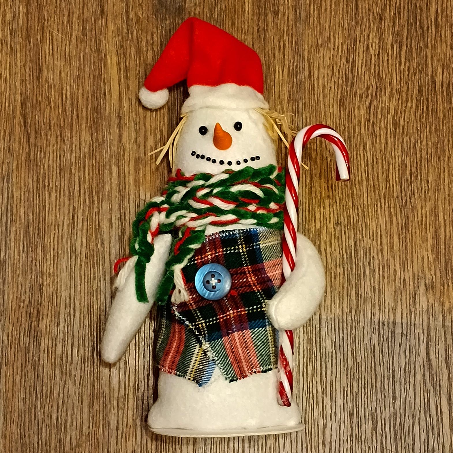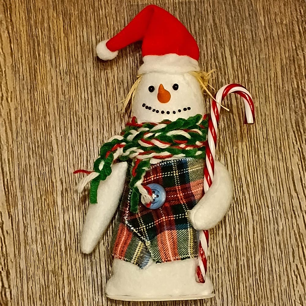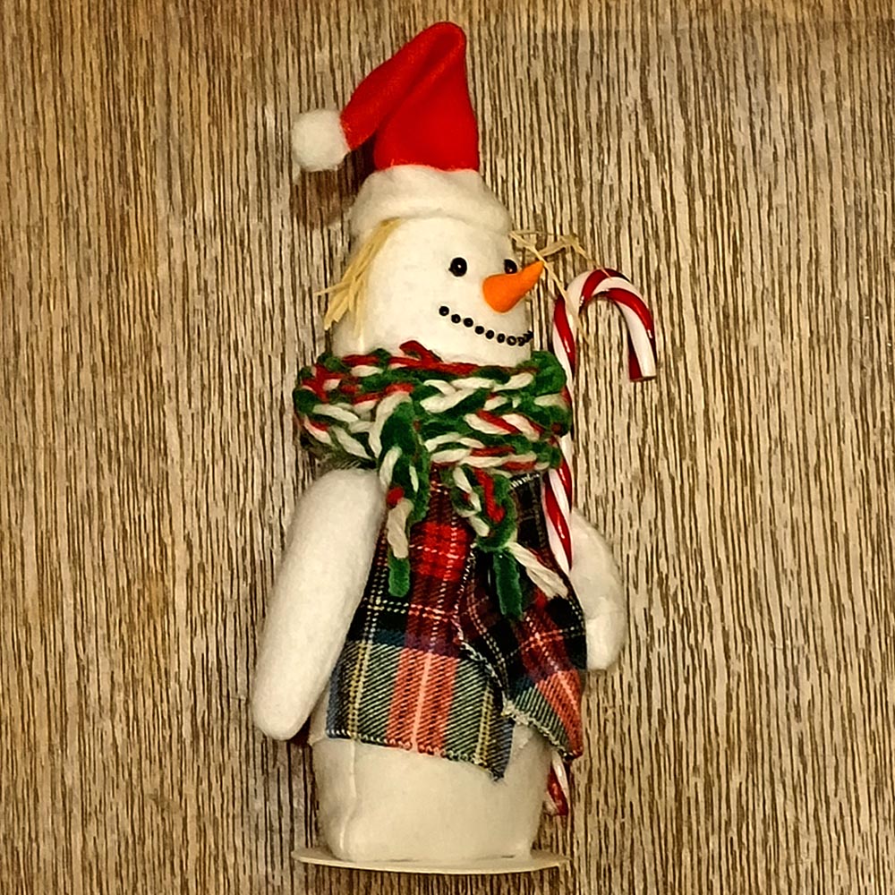 Снеговик в красном колпачке с тростью TOV-0419 ручная работа 23 см