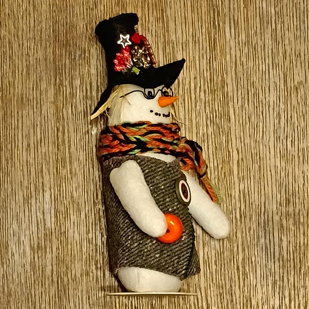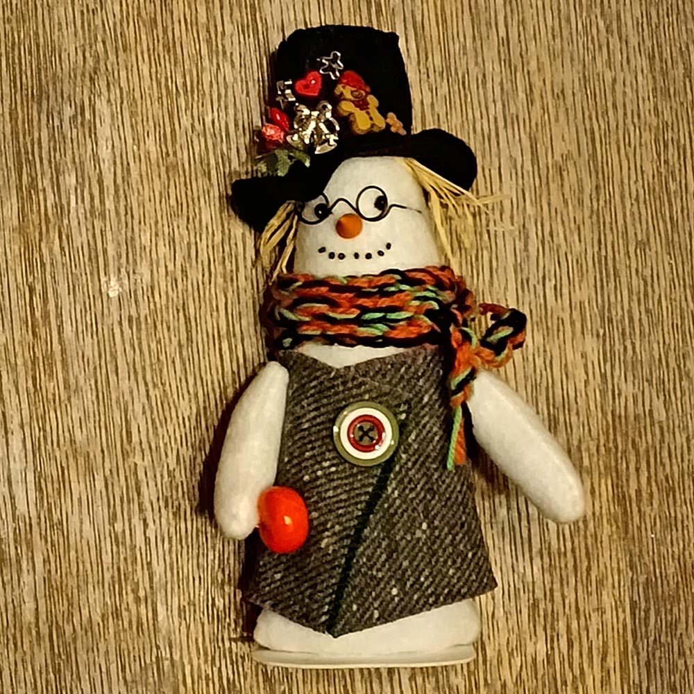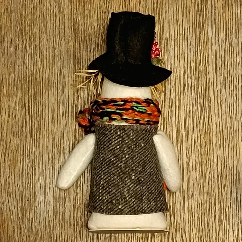 Снеговик в черных очках, черной шляпе, с мандарином TOV-0420 ручная работа 23 см