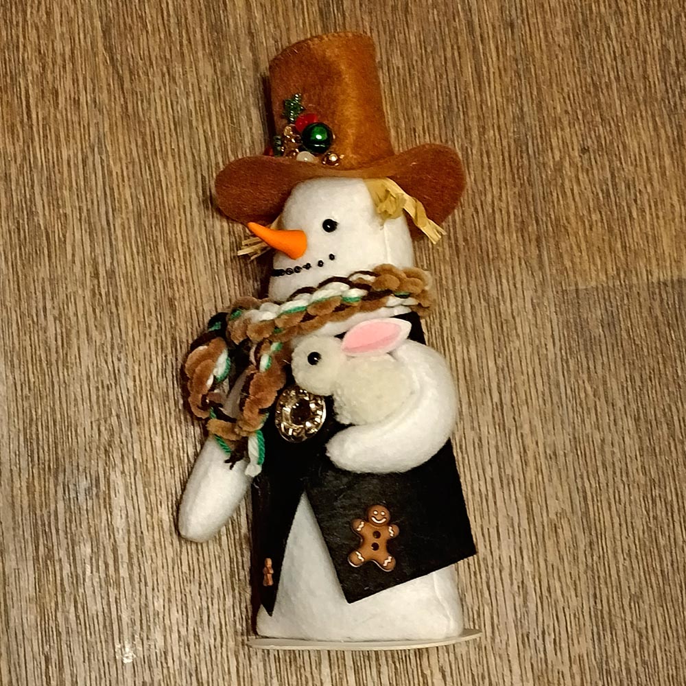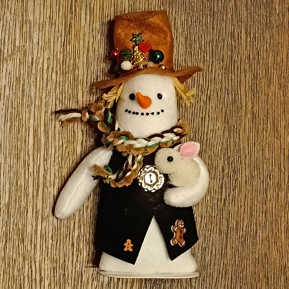Снеговик в бежевой шляпе, с зайчиком TOV-0424 ручная работа 23 см