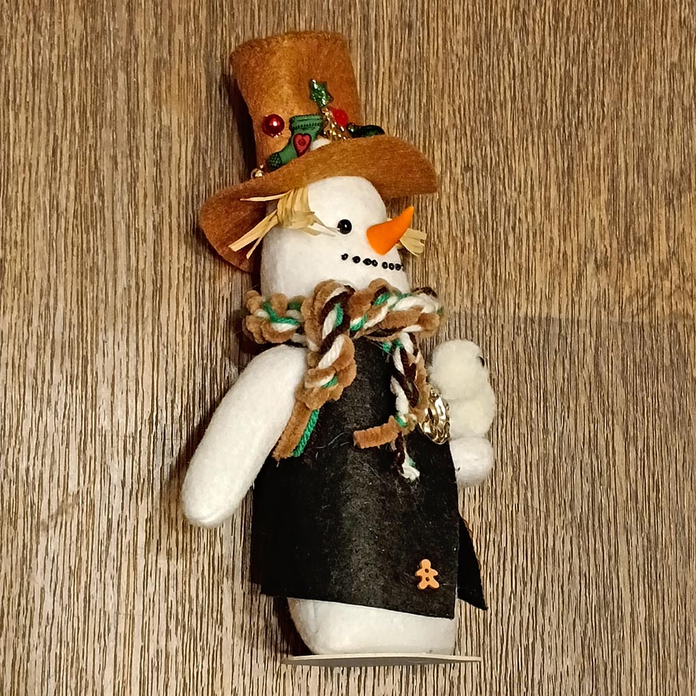 Снеговик в очках и серой шляпе TOV-0217 ручная работа 23 см