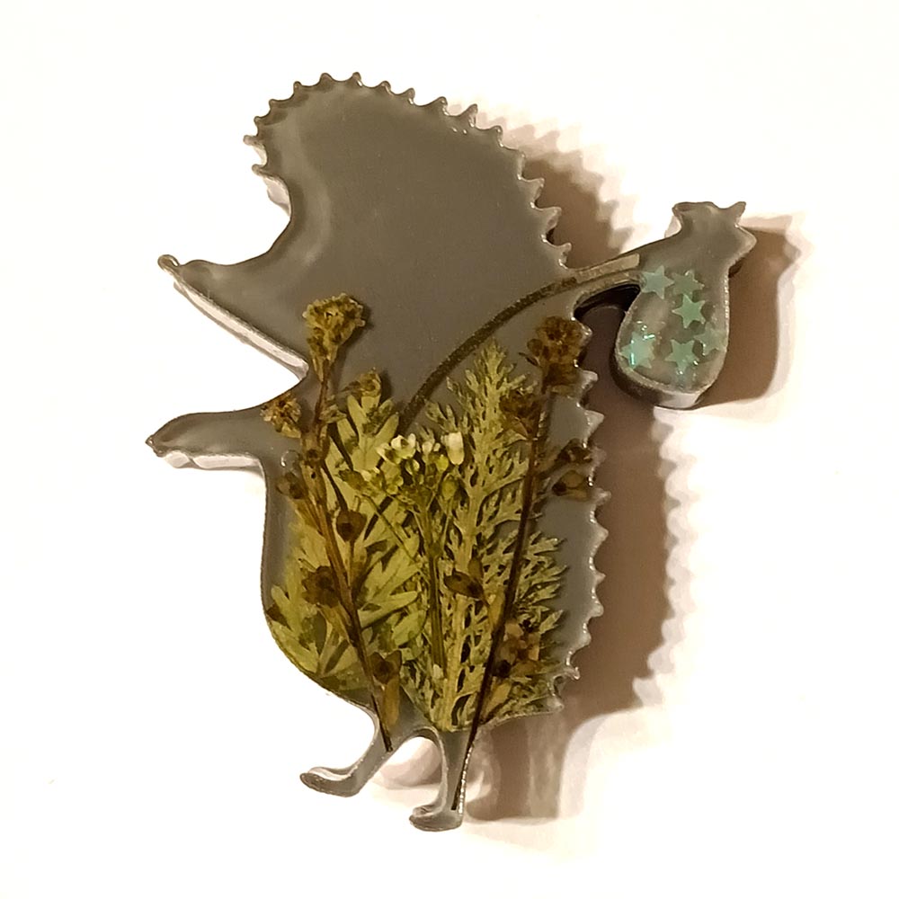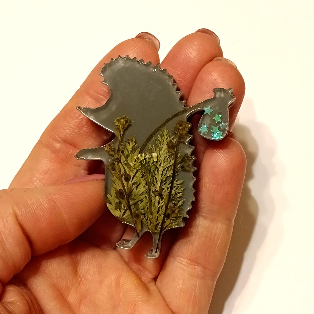 Брошь Ежик в Тумане из эпоксидной смолы TOV-0440 темно-серый цвет с натуральными сухоцветами 55х47х9 мм