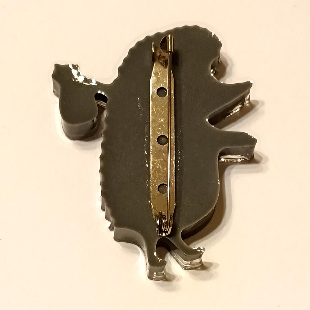 Брошь Кошка Сидящая из эпоксидной смолы TOV-0322 черный цвет с натуральными сухоцветами Лютики 80х65х4 мм