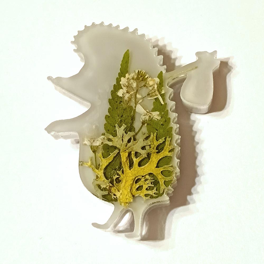 Брошь Ежик в Тумане из эпоксидной смолы TOV-0441 светло-серый цвет с натуральными сухоцветами 55х47х9 мм