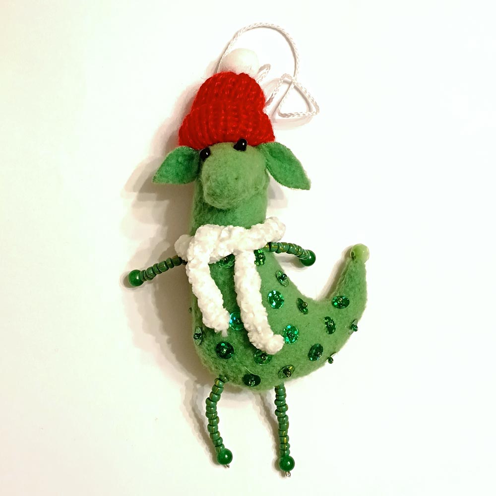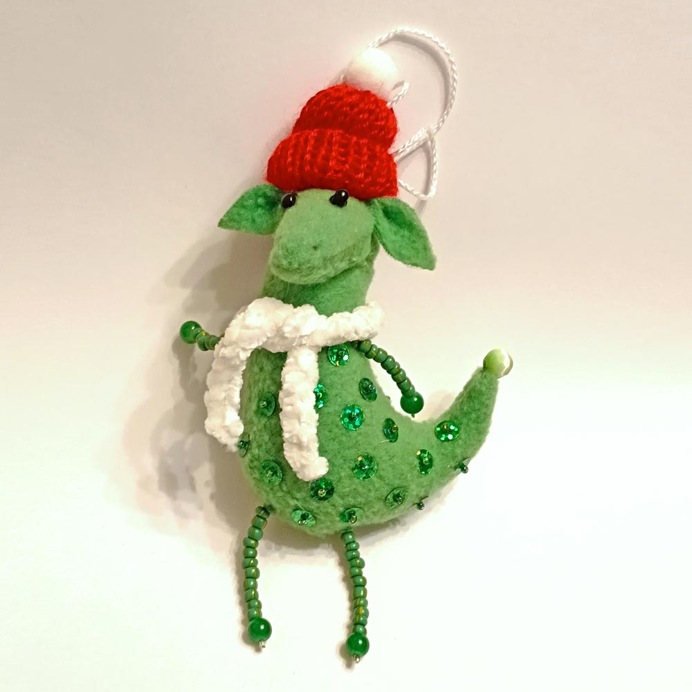 Сувенирная игрушка Мышь с зеленым бантом TOV-0164 ручная работа 14x5 см
