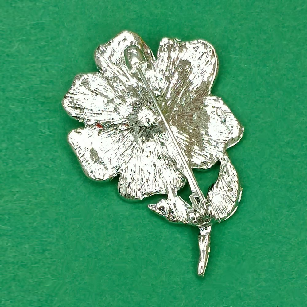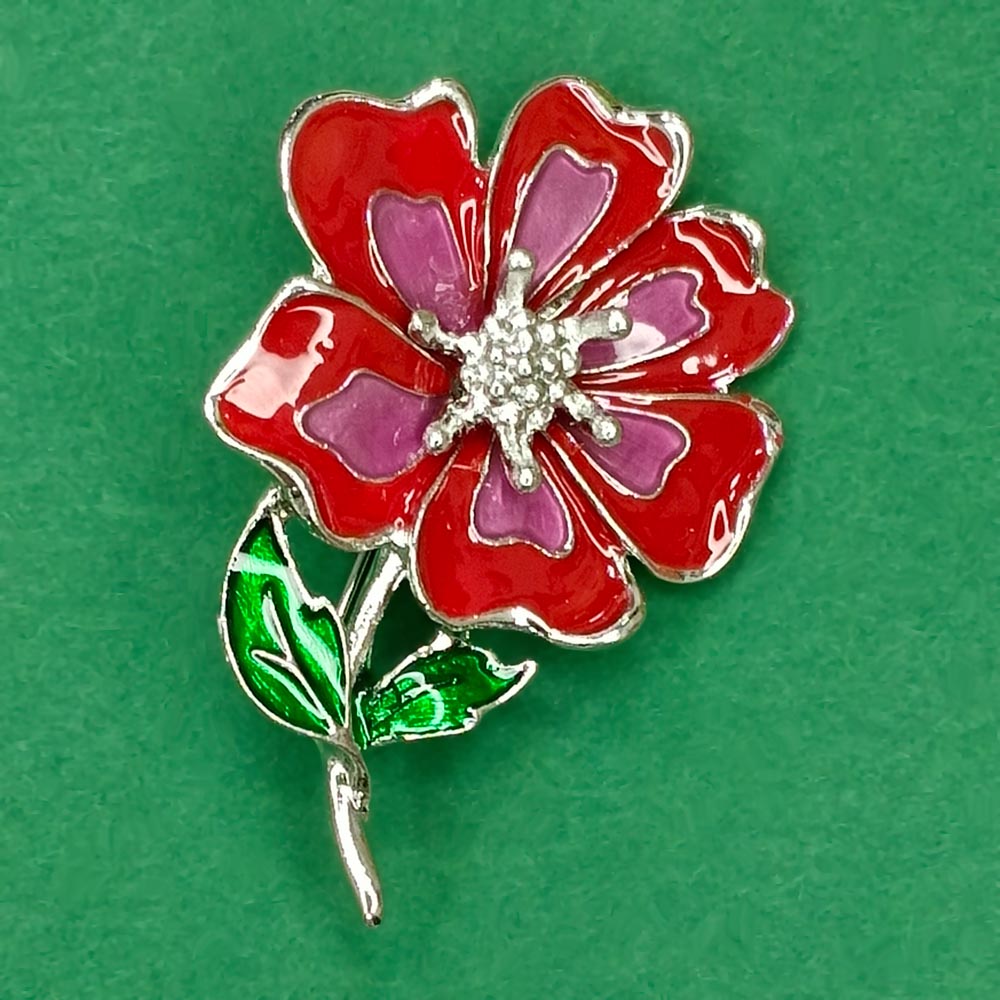 Брошь металлическая Мак Красная с Зеленым эмаль TOV-0457 основа серебряного цвета 50х35х13 мм