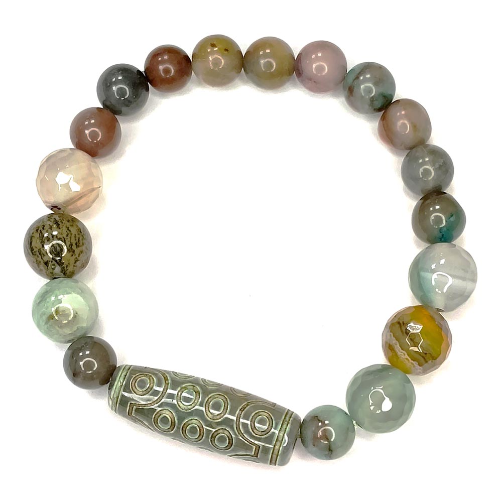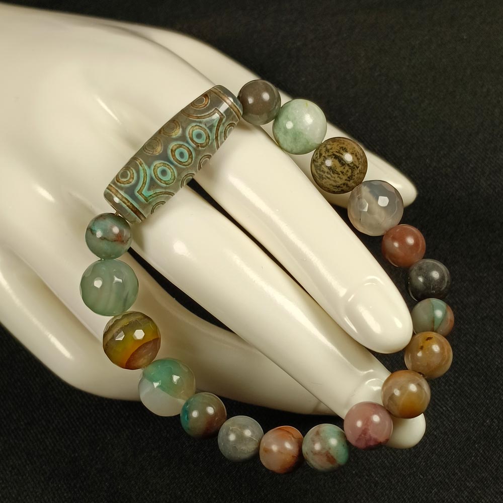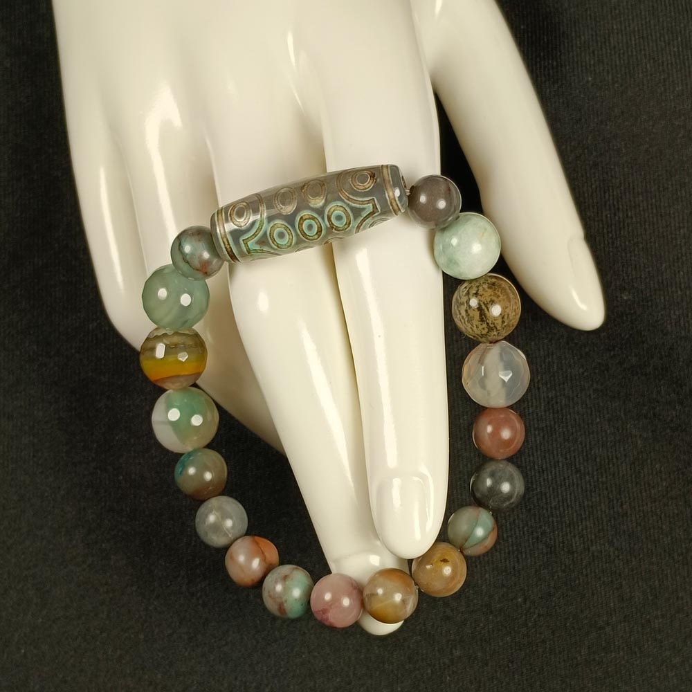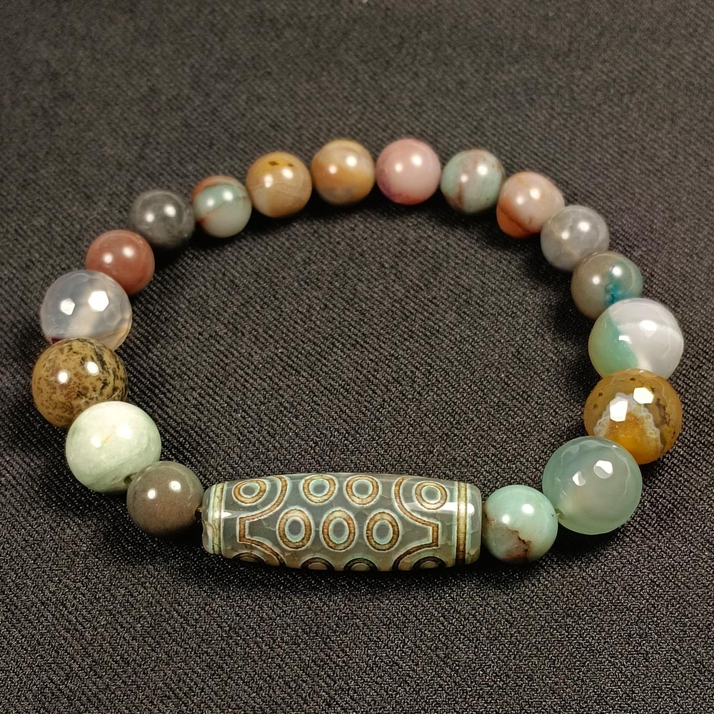 Браслет из натуральных камней (яшма, агат, дзи 21 глаз) TOV-0470 ручная работа, диаметр 6 см