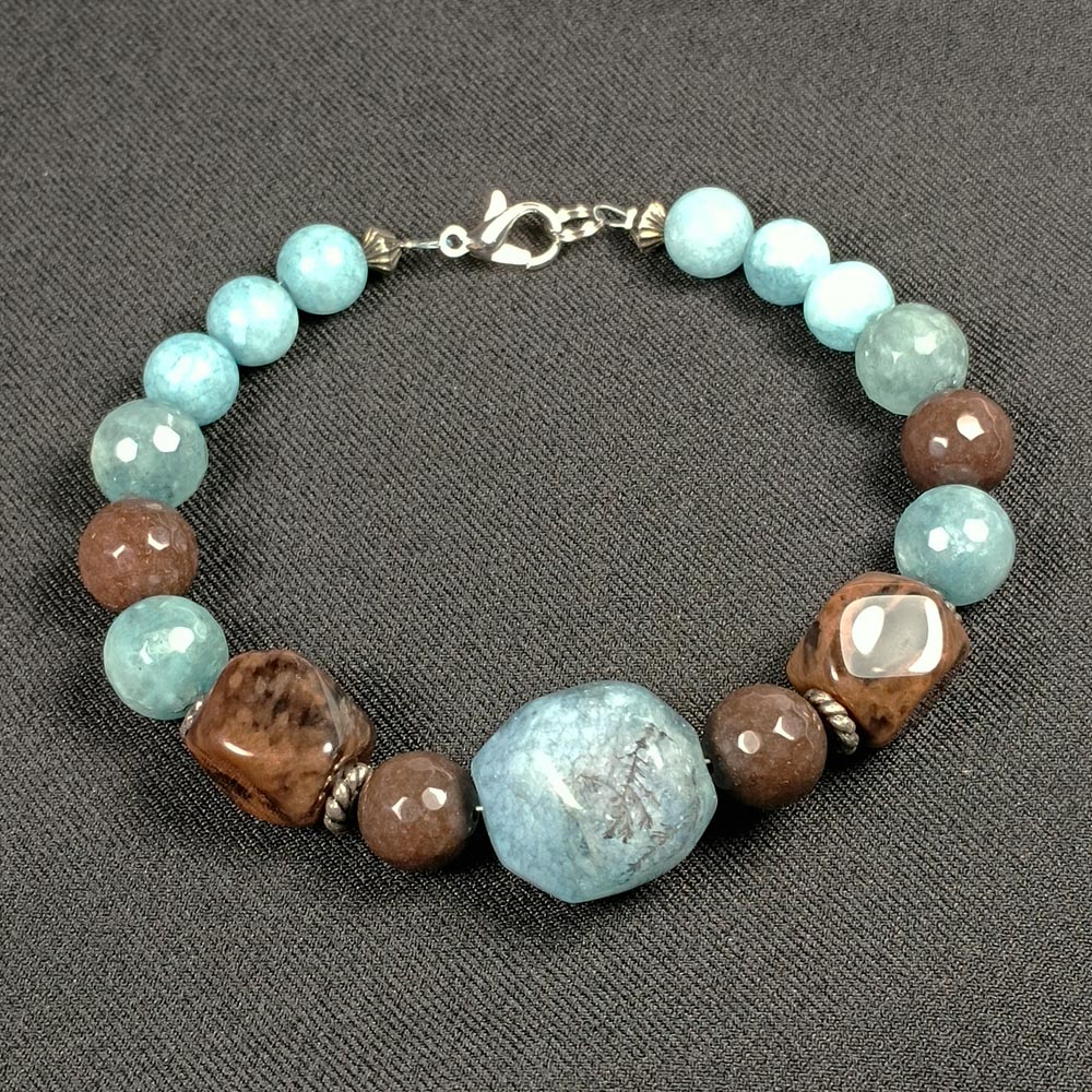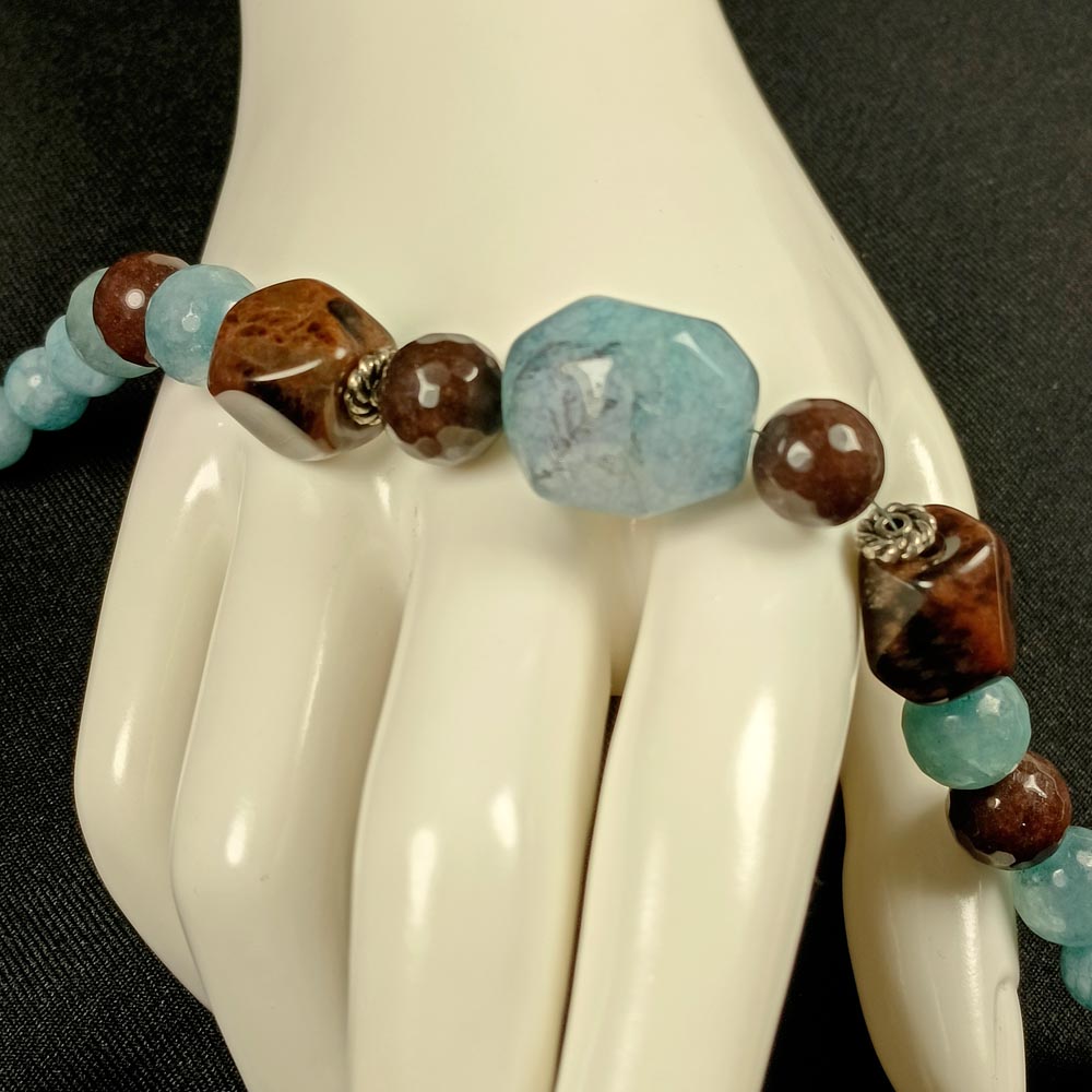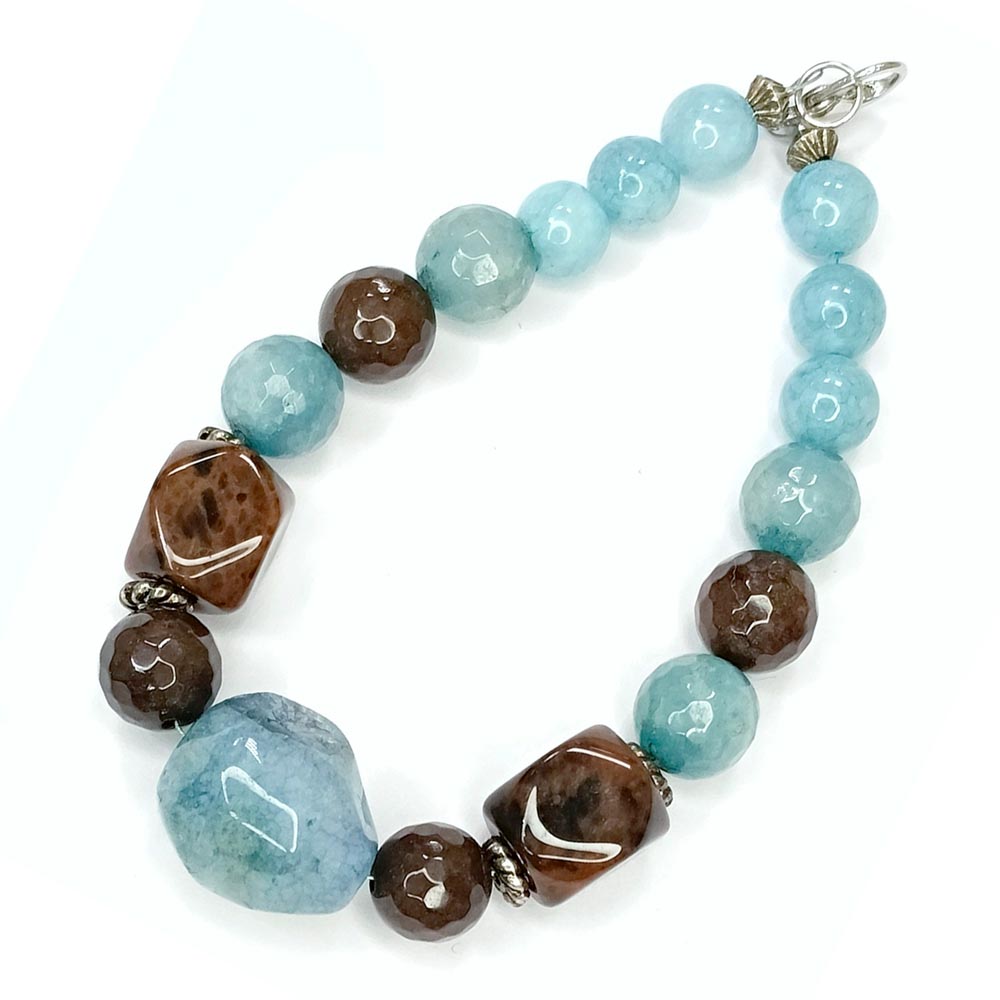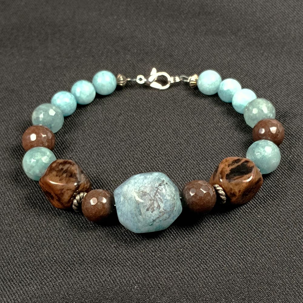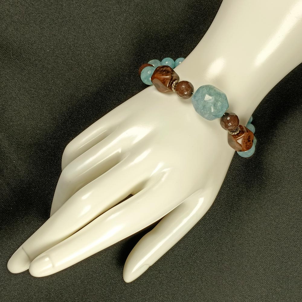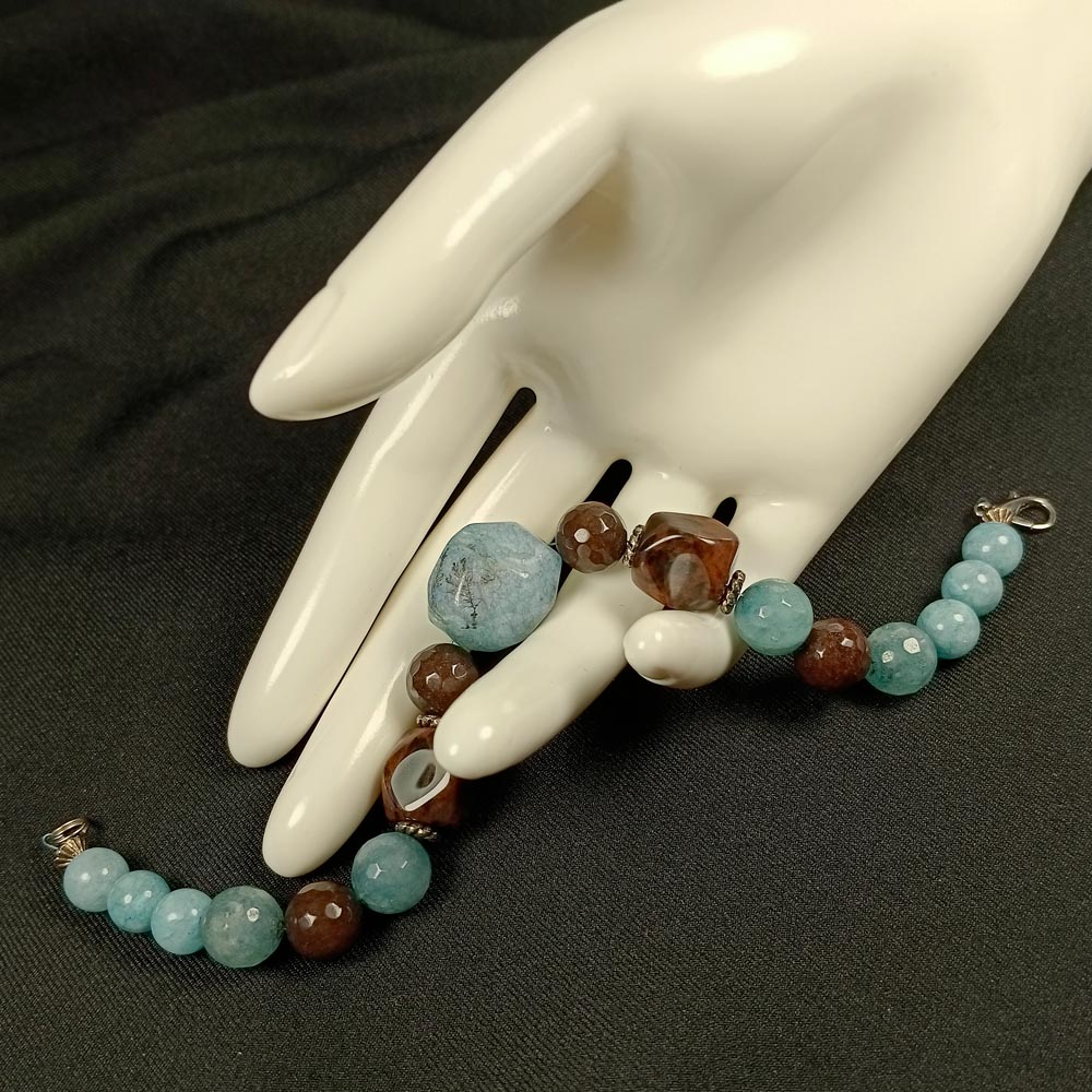 Браслет из натуральных камней (агат, аквамарин) TOV-0472 ручная работа, длина 21.5 см